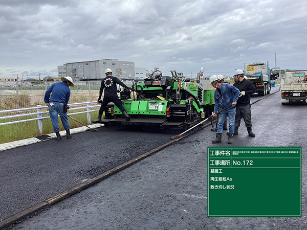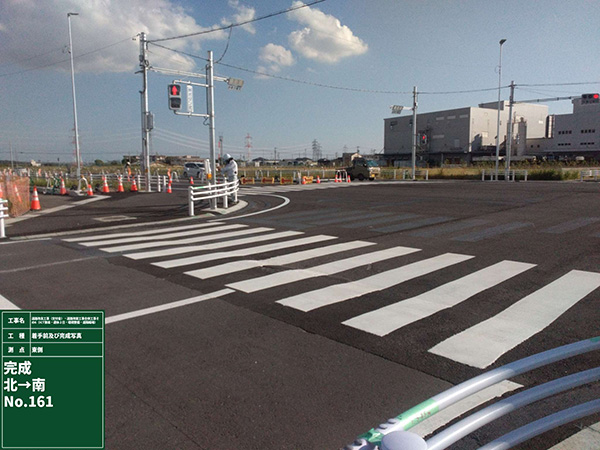 交通量の多い現道上での工事で、一般車の通行を維持しながら工事を行い、進捗に応じて車道規制を切り替える必要がありました。施工手順と車道規制の方法を事前によく検討することで、一般車の通行を維持しつつ事故なく工事を工期内に完了することができました。