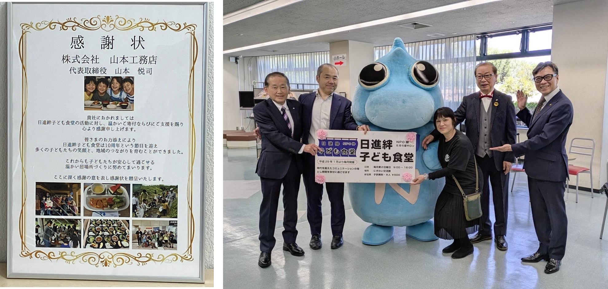 山本工務店は、微力ながらこの活動を応援し続けており、この度感謝状をいただきました。